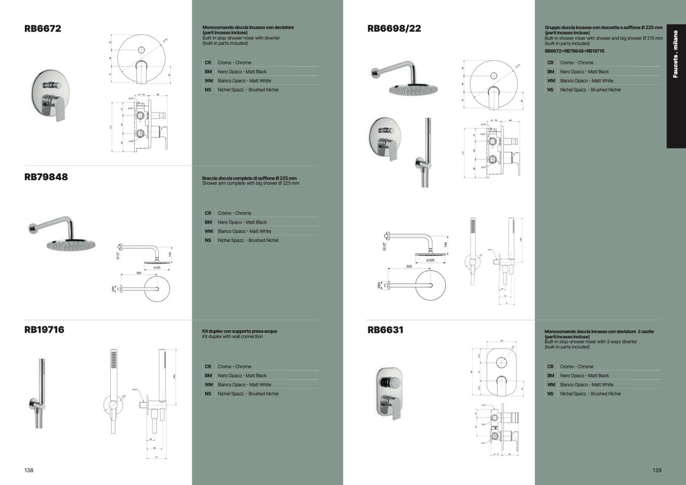 Gruppo doccia incasso con doccetta e soffione Ø 225 mm