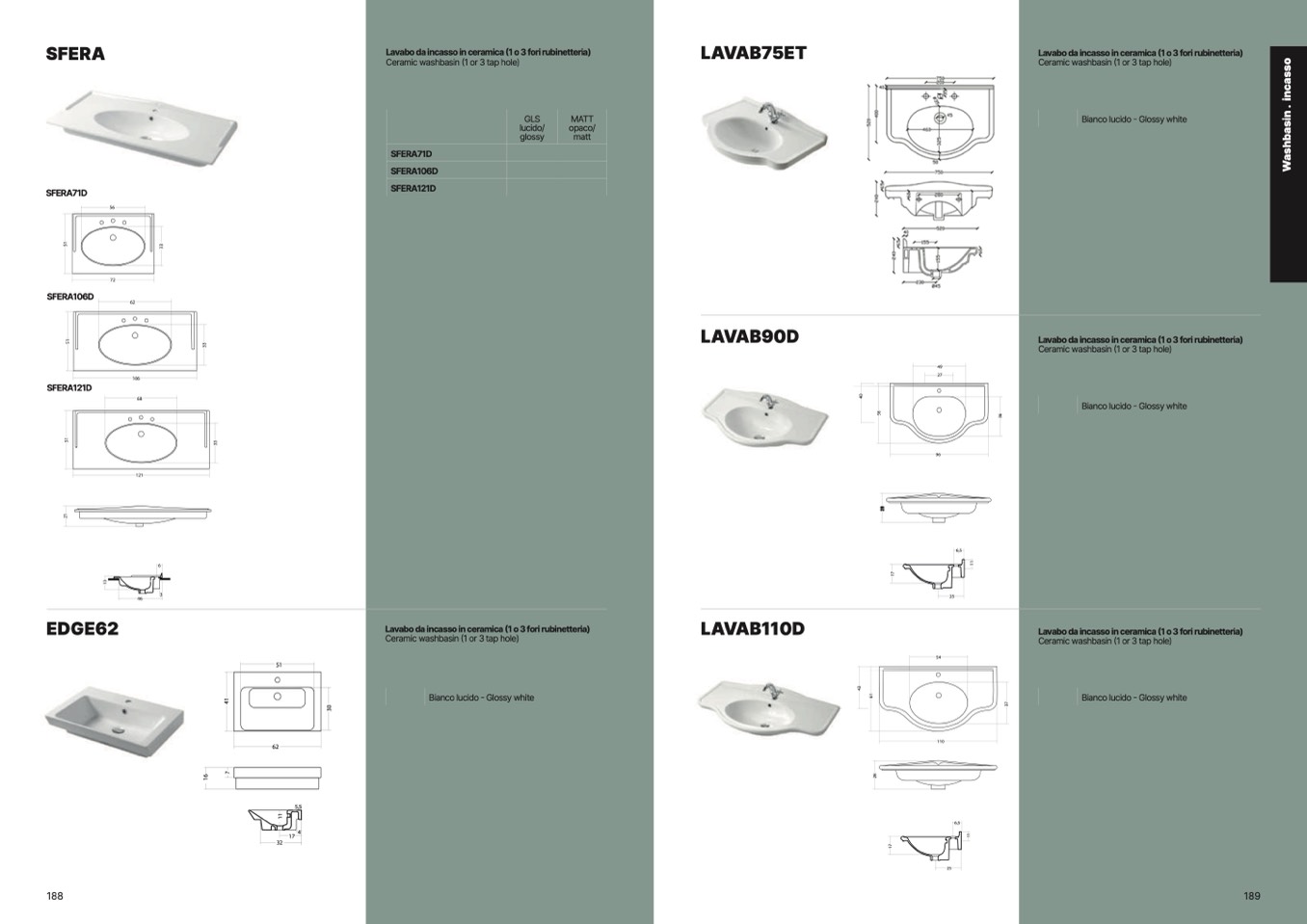 Lavabo da incasso in ceramica (1 o 3 fori rubinetteria)