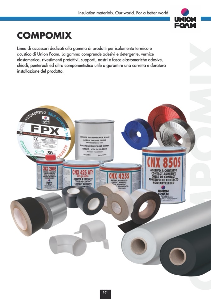 acustico di Union Foam. La gamma comprende adesivi e detergente, vernice