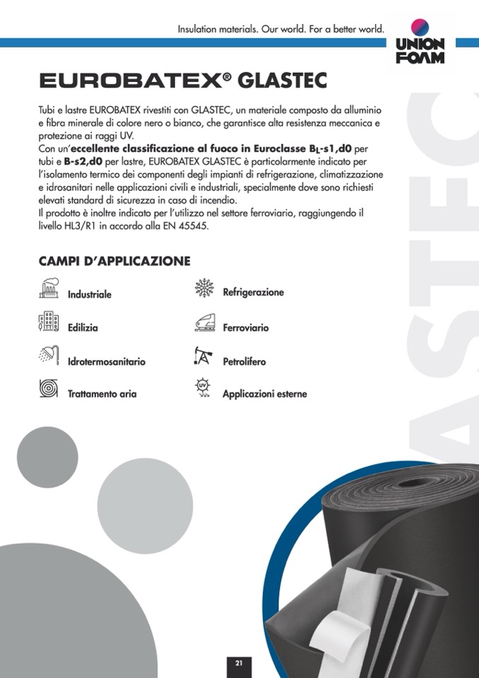 tubi e B-s2,d0 per lastre, EUROBATEX GLASTEC è particolarmente indicato per