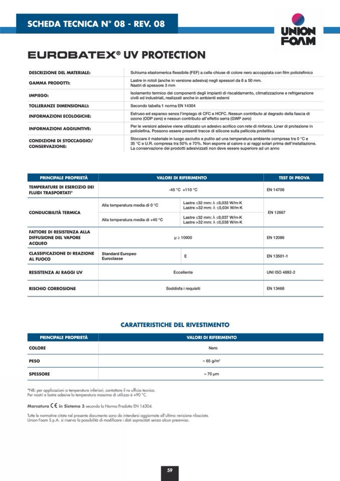 Union Foam S.p.A. si riserva la possibilità di modificare i dati sopracitati senza alcun preavviso.