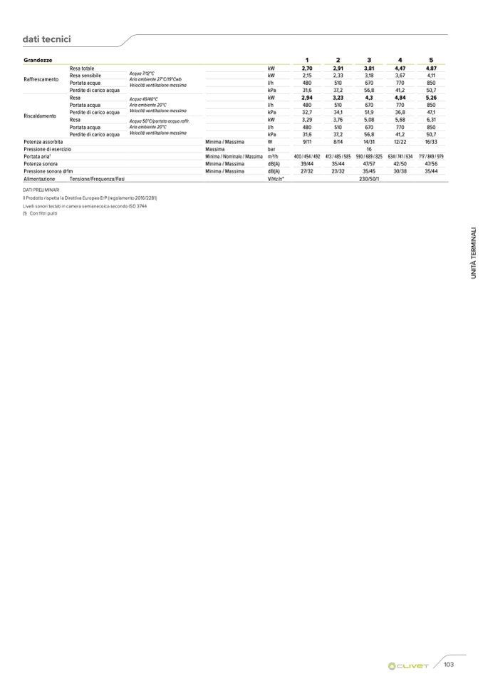 Livelli sonori testati in camera semianecoica secondo ISO 3744
