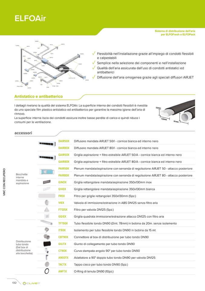 I dettagli rivelano la qualità del sistema ELFOAir. La superficie interna dei condotti flessibili è rivestita