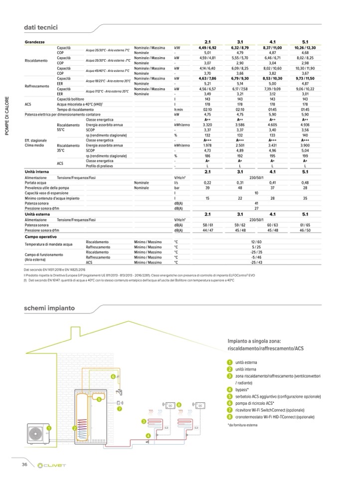 Il Prodotto rispetta la Direttiva Europea ErP (regolamenti UE 811/2013 - 813/2013 - 2016/2281). Classi energetiche con presenza di controllo di impianto ELFOControl