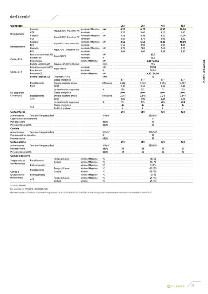 Il Prodotto rispetta la Direttiva Europea ErP (regolamenti UE 811/2013 - 813/2013 - 2016/2281). Classi energetiche con presenza di controllo di impianto ELFOControl