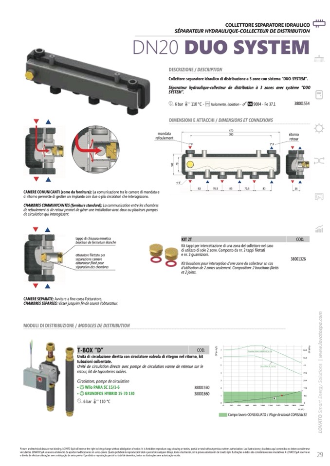 Collettore-separatore idraulico di distribuzione a 3 zone con sistema “DUO-SYSTEM”.
