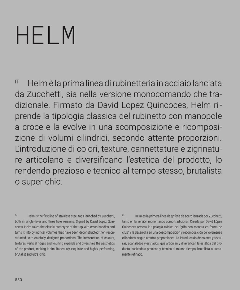 Helm es la primera línea de grifería de acero lanzada por Zucchetti,