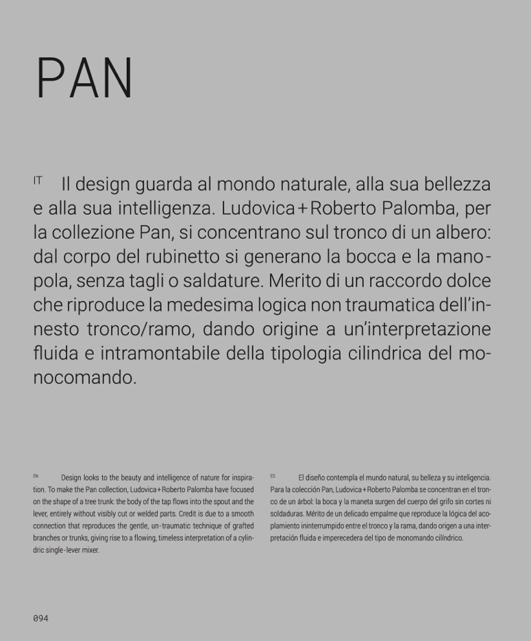 tion. To make the Pan collection, Ludovica + Roberto Palomba have focused