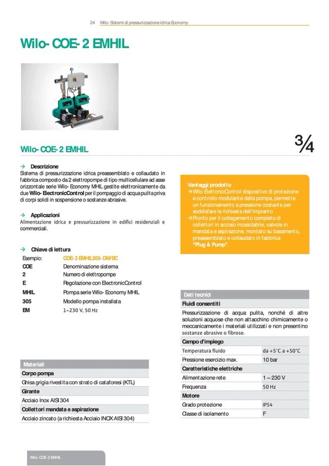 24 Wilo-Sistemi di pressurizzazione idrica Economy