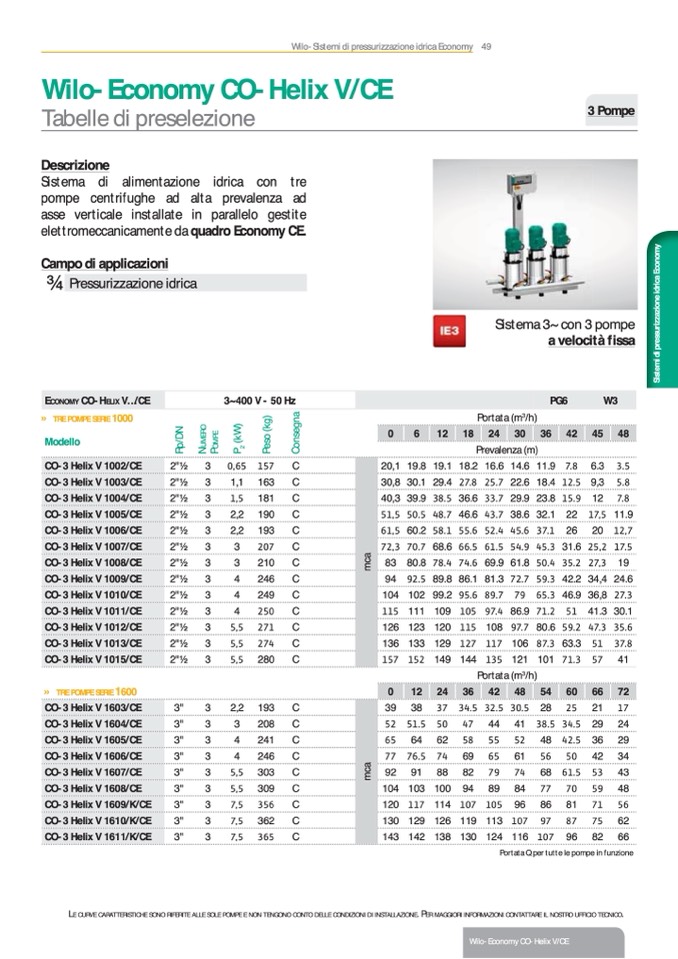E CURVE CARATTERISTICHE SONO RIFERITE ALLE SOLE POMPE E NON TENGONO CONTO DELLE CONDIZIONI DI INSTALLAZIONE