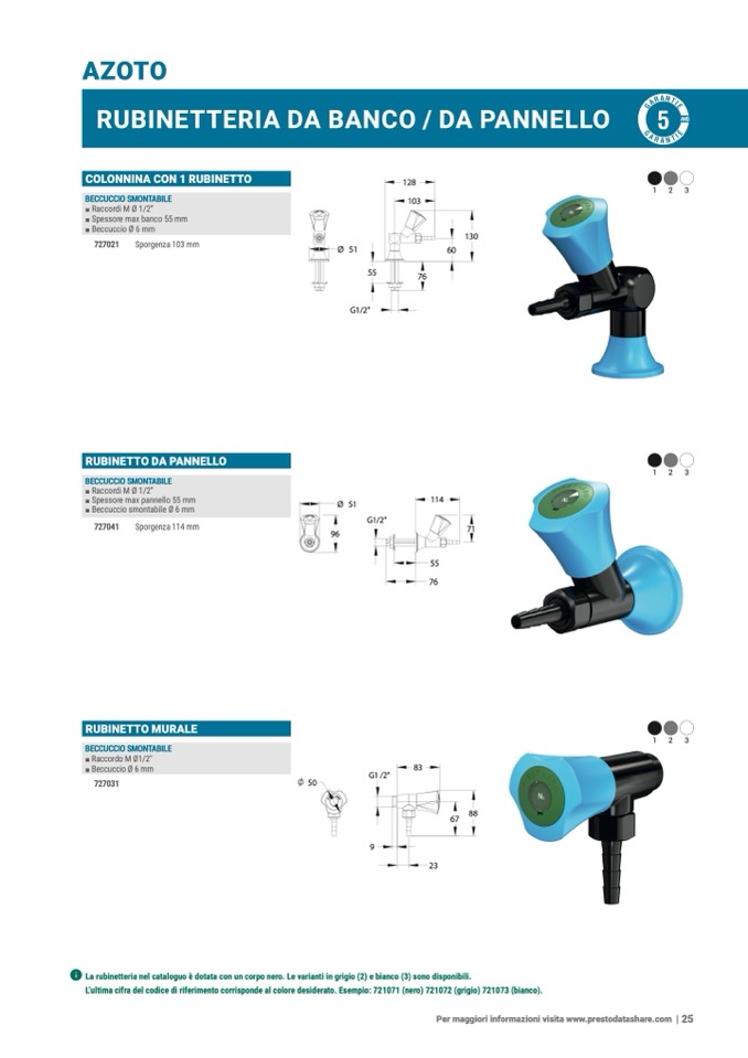 ʢ La rubinetteria nel cataloguo è dotata con un corpo nero. Le varianti in grigio (2) e bianco (3) sono disponibili