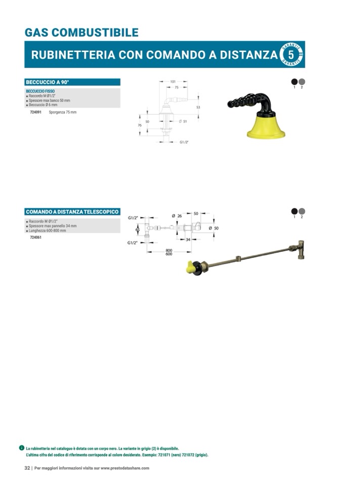 ʢ La rubinetteria nel cataloguo è dotata con un corpo nero. La variante in grigio (2) è disponibile.