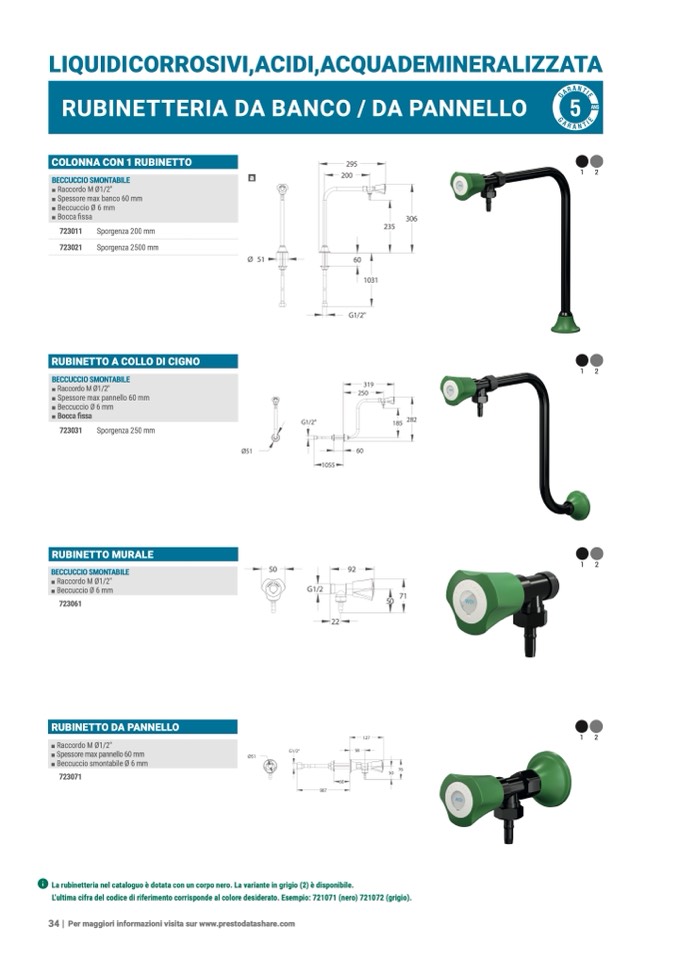 ʢ La rubinetteria nel cataloguo è dotata con un corpo nero. La variante in grigio (2) è disponibile.