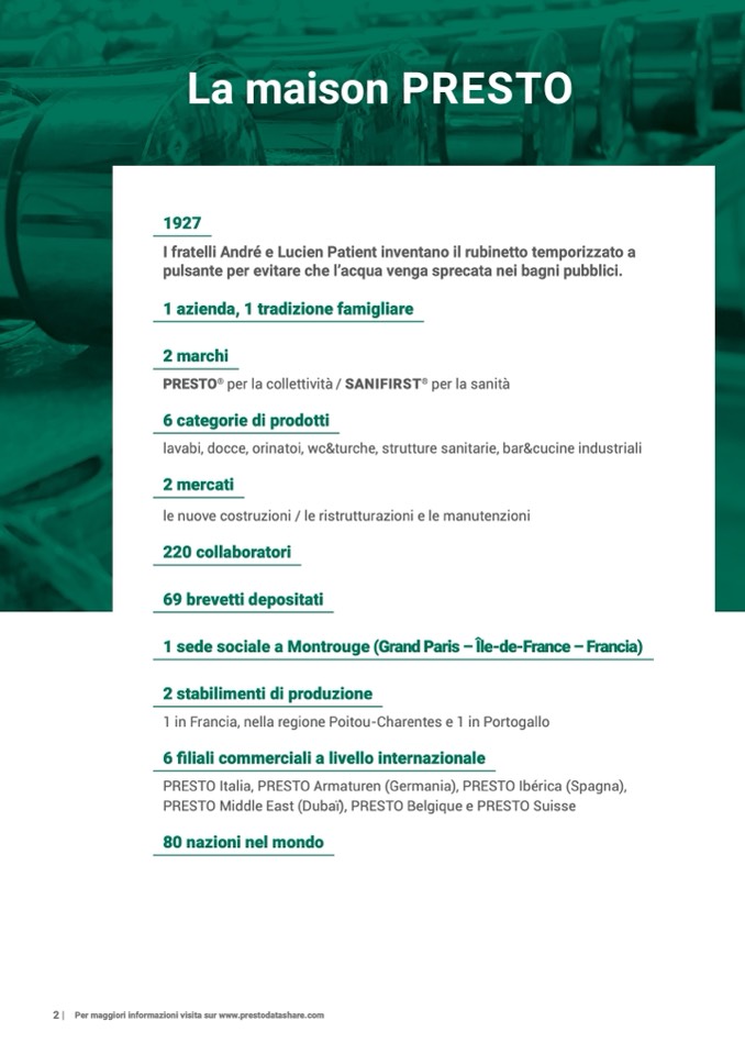 PRESTO Italia, PRESTO Armaturen (Germania), PRESTO Ibérica (Spagna)