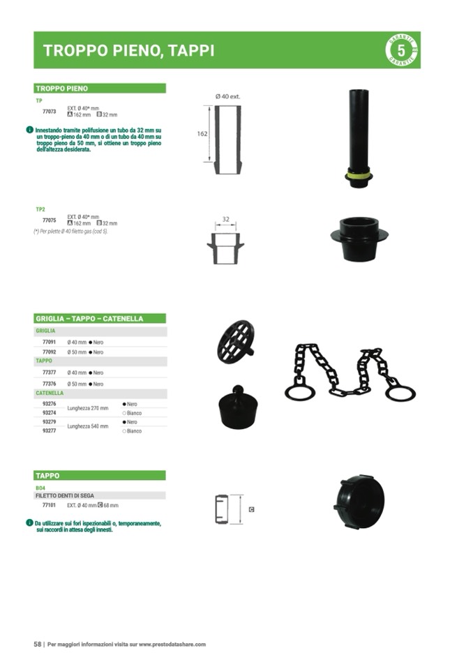 troppo pieno da 50 mm, si ottiene un troppo pieno