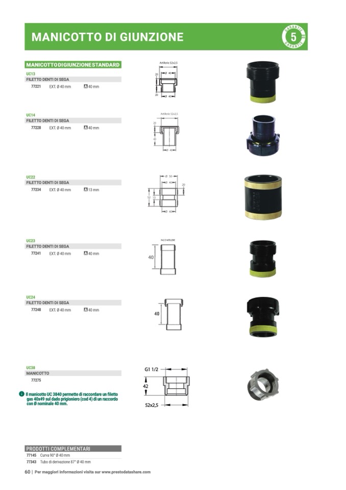 ʢ Il manicotto UC 3840 permette di raccordare un