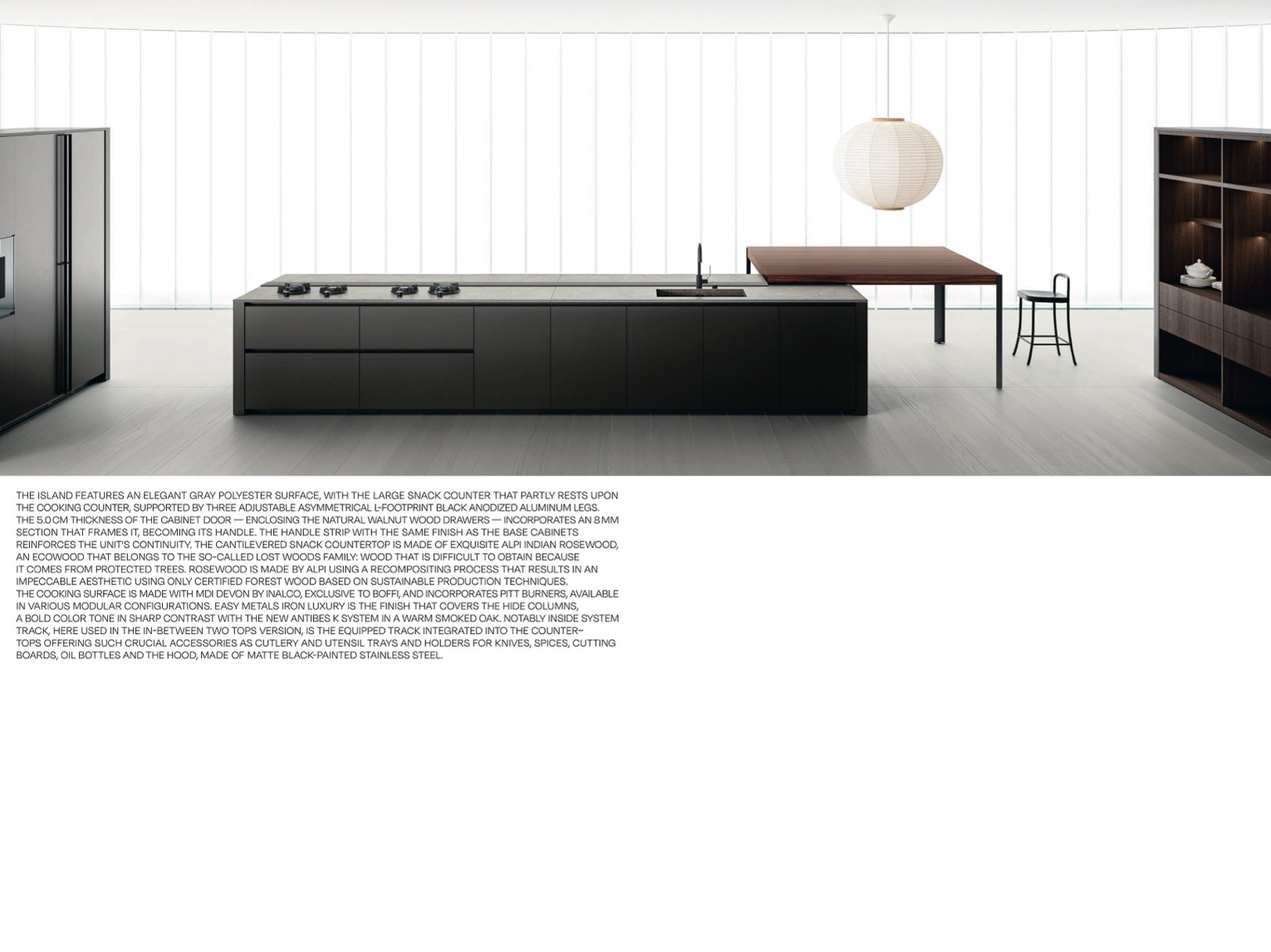 REINFORCES THE UNIT’S CONTINUITY. THE CANTILEVERED SNACK COUNTERTOP IS MADE OF EXQUISITE ALPI INDIAN ROSEWOOD,