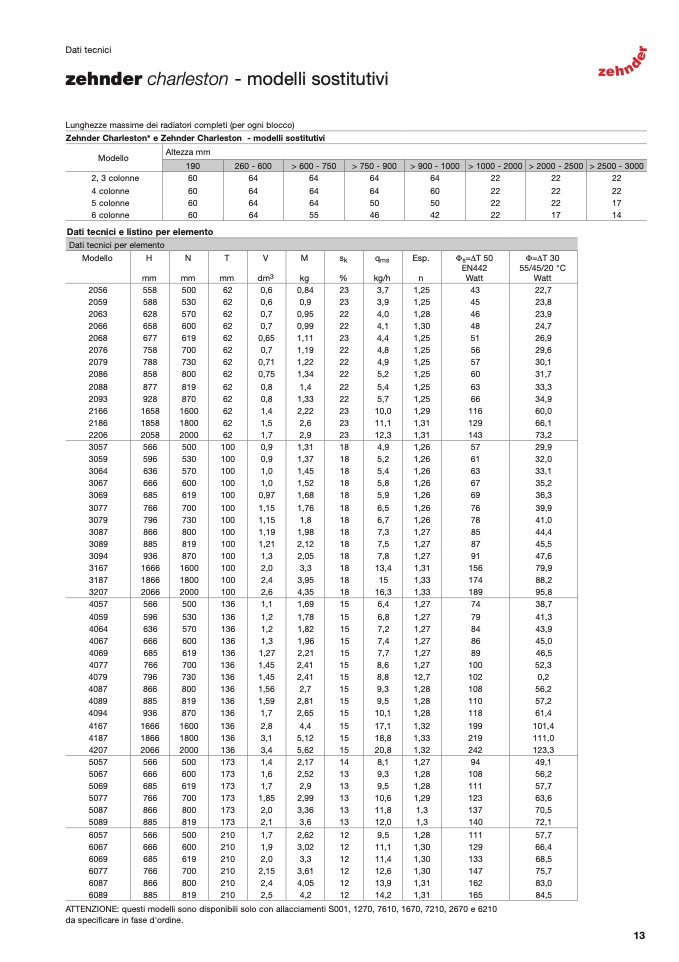 Zehnder Charleston* e Zehnder Charleston - modelli sostitutivi