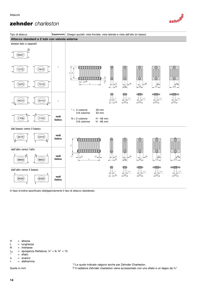 1) Le quote indicate valgono anche per Zehnder Charleston.