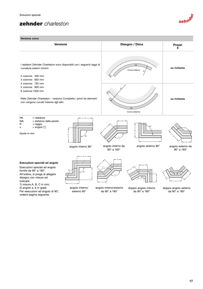 I radiatori Zehnder Charleston sono disponibili con i seguenti raggi di