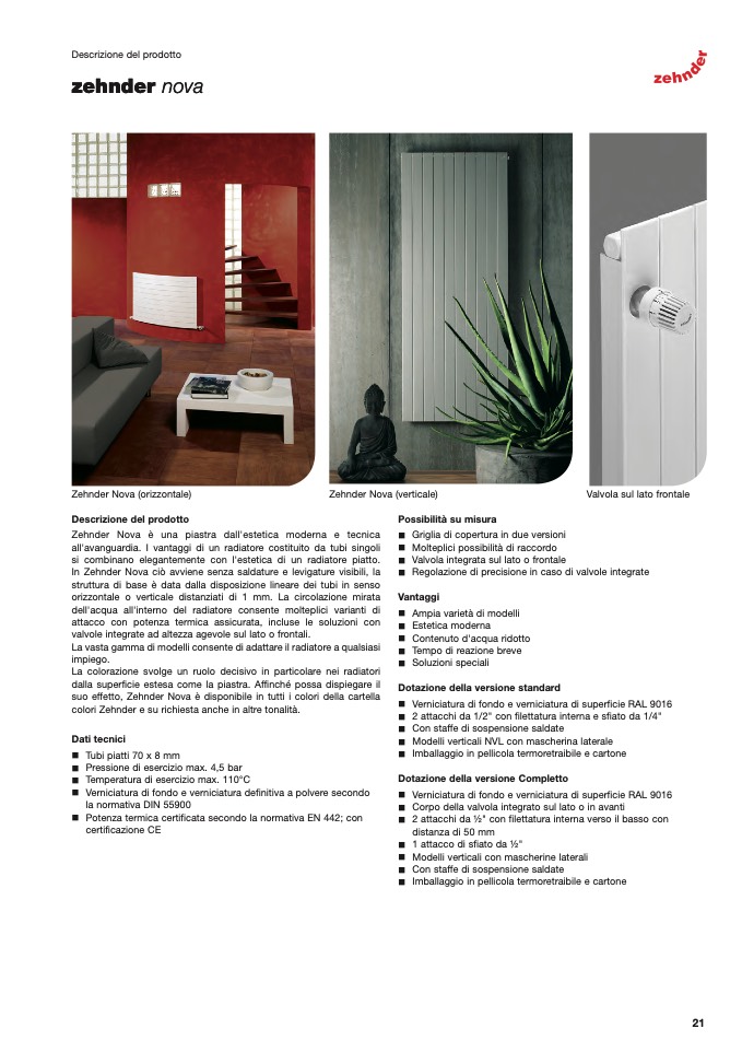 suo effetto, Zehnder Nova è disponibile in tutti i colori della cartella