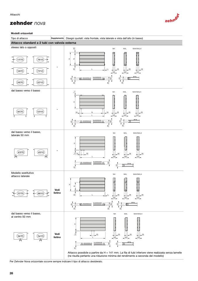 Per Zehnder Nova orizzontale occorre sempre indicare il tipo di attacco desiderato.