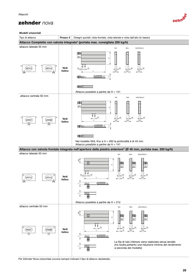 Per Zehnder Nova orizzontale occorre sempre indicare il tipo di attacco desiderato.