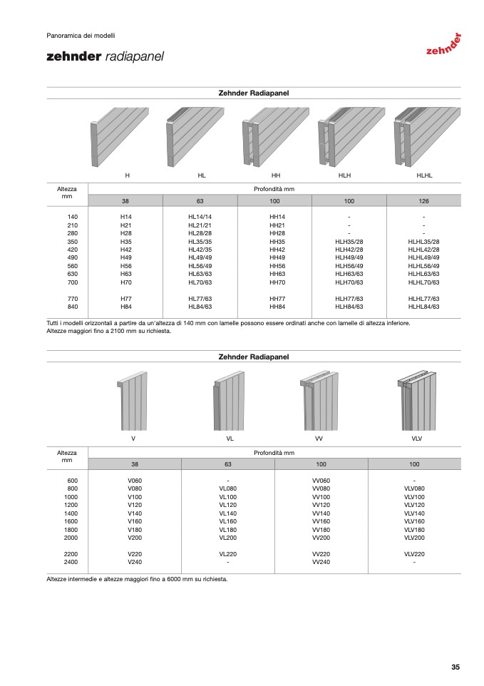 Altezze maggiori fino a 2100 mm su richiesta.