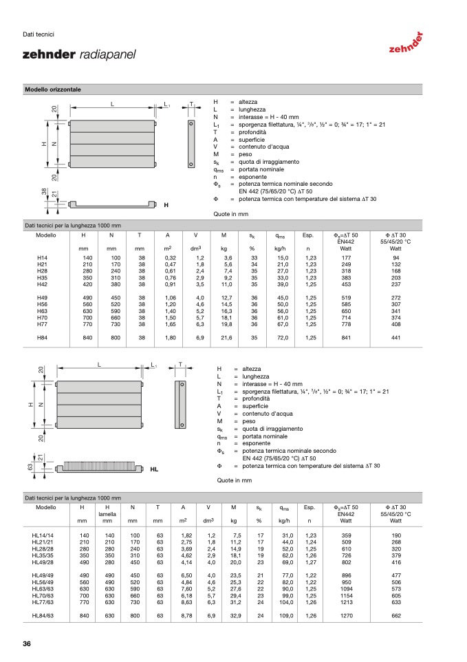EN 442 (75/65/20 °C) ∆T 50