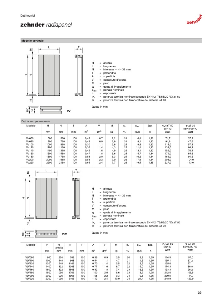 = potenza termica nominale secondo EN 442 (75/65/20 °C) ∆T 50