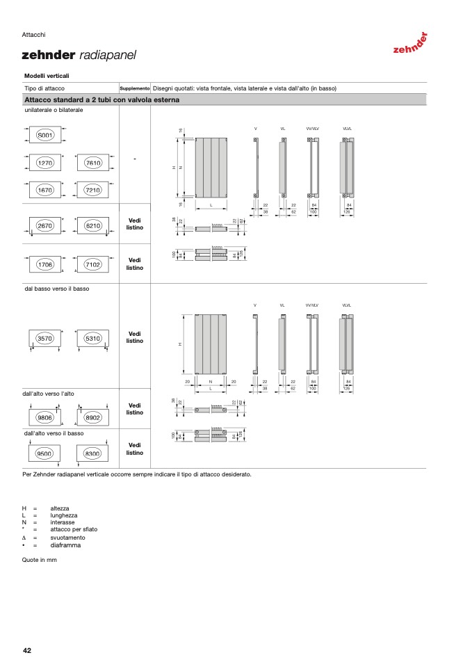 Per Zehnder radiapanel verticale occorre sempre indicare il tipo di attacco desiderato.