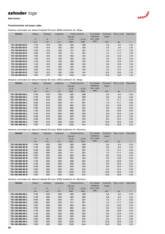Versione verniciata con attacchi laterali SX (cod. 2285) sostitutivi int. Ghisa