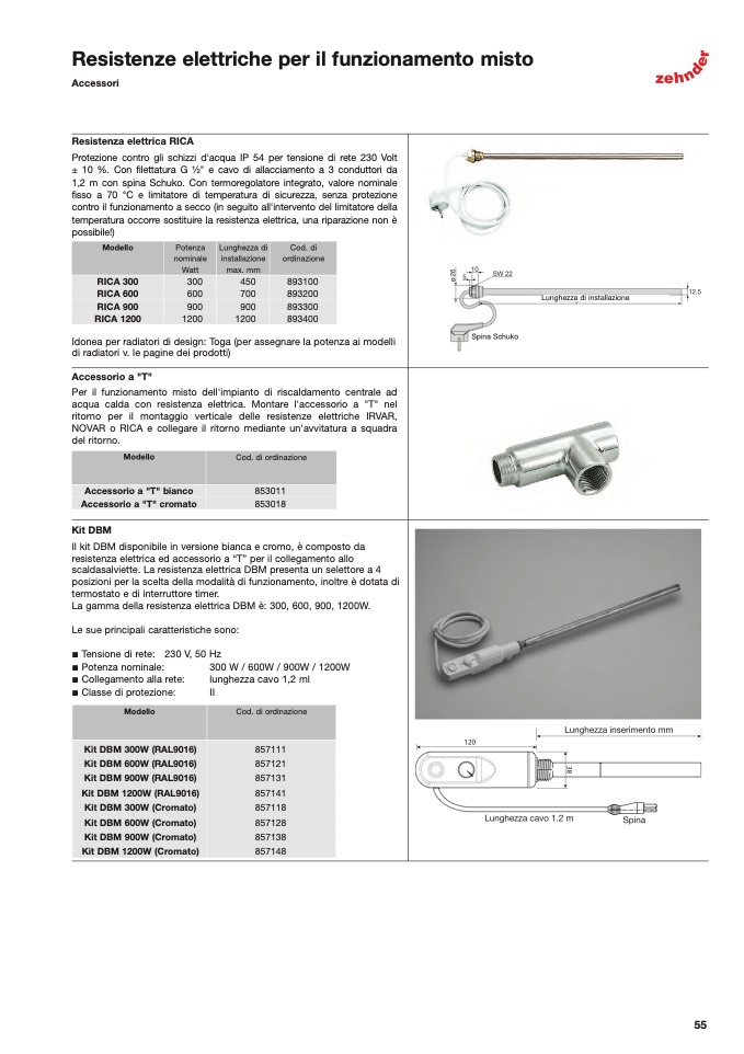 resistenza elettrica ed accessorio a “T” per il collegamento allo
