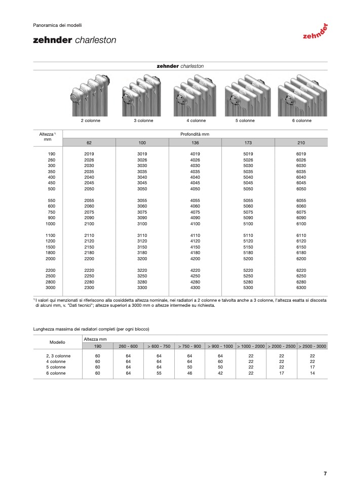 Lunghezza massima dei radiatori completi (per ogni blocco)