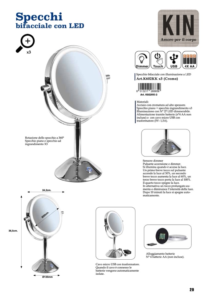 Specchio piano + specchio ingrandimento x3
