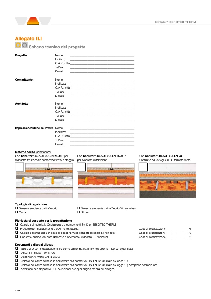 q Calcolo dei materiali / Quotazione dei componenti Schlüter-BEKOTEC-THERM