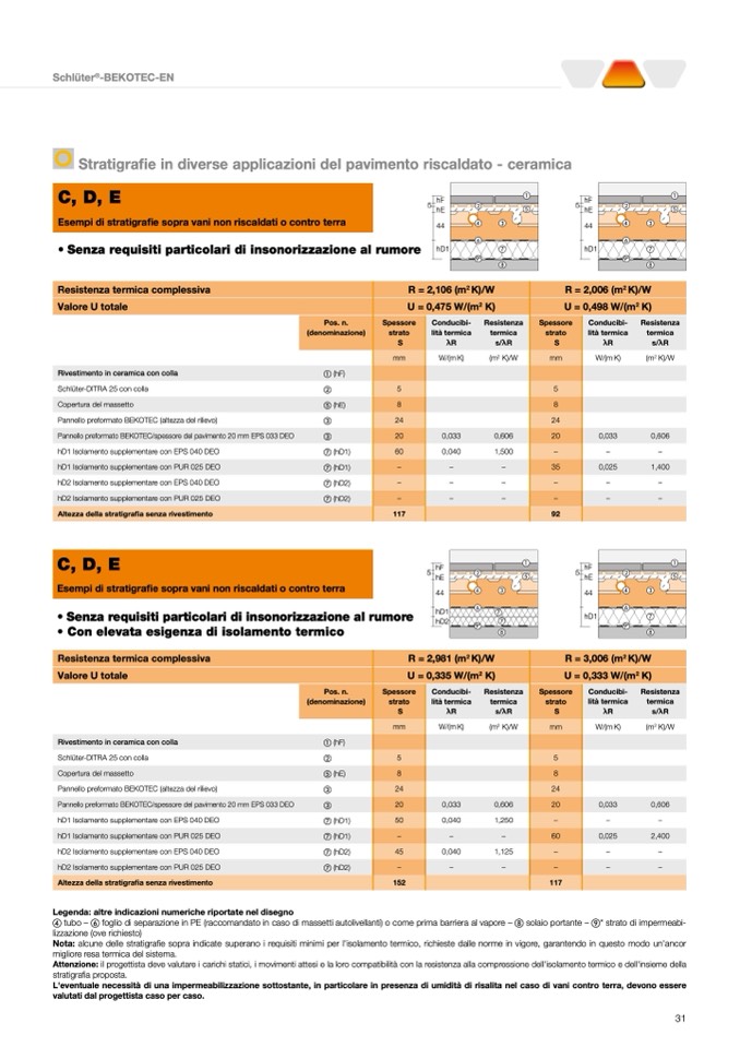 Nota: alcune delle stratigrafie sopra indicate superano i requisiti minimi per l'isolamento termico, richieste dalle norme in vigore, garantendo in questo modo un'ancor