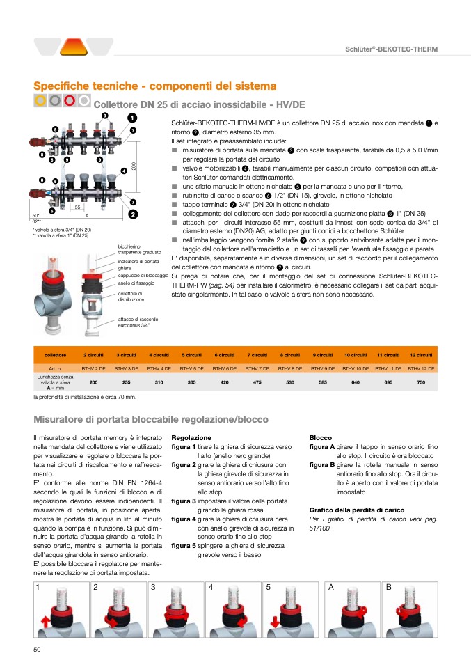 Schlüter-BEKOTEC-THERM-HV/DE è un collettore DN 25 di acciaio inox con mandata A e