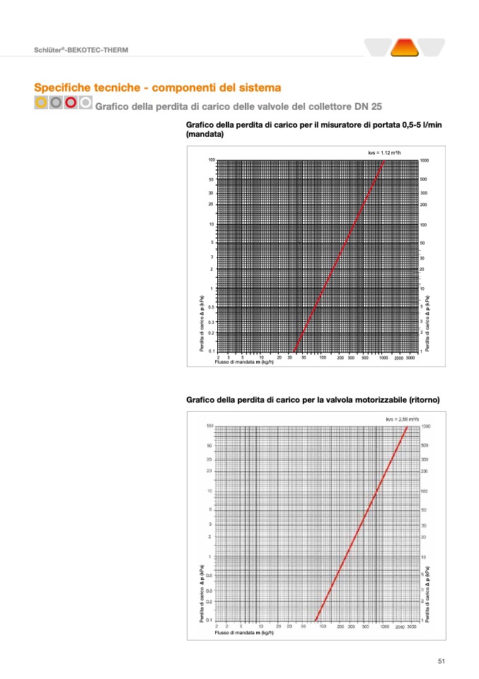 Grafico della perdita di carico per la valvola motorizzabile (ritorno)
