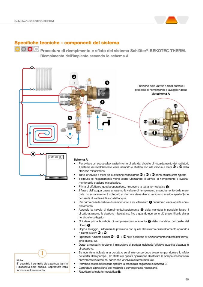 • Il circuito di riscaldamento viene lavato utilizzando le valvole di riempimento e svuota-