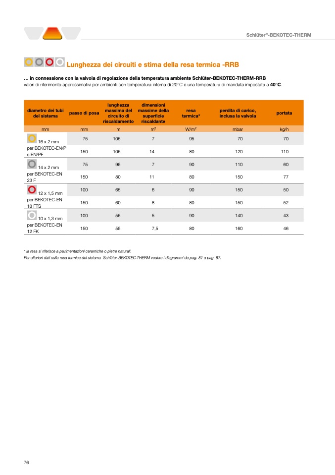 Per ulteriori dati sulla resa termica del sistema Schlüter-BEKOTEC-THERM vedere i diagrammi da pag. 81 a pag. 87.