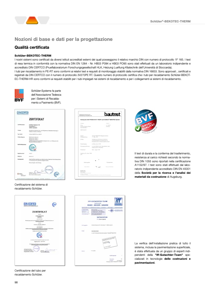 registrati da DIN CERTCO con il numero di protocollo 3V270PE RT. Questo numero di protocollo certifica che i tubi per riscaldamento Schlüter-BEKOT-