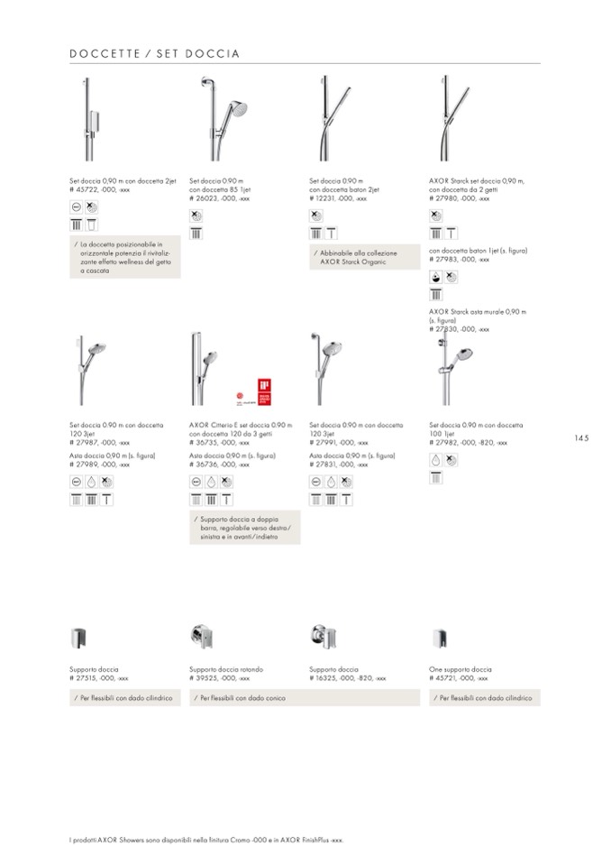 I prodotti AXOR Showers sono disponibili nella finitura Cromo -000 e in AXOR FinishPlus -xxx.
