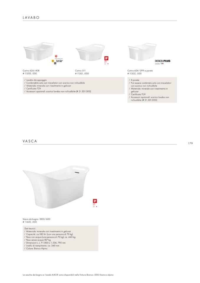 Le vasche da bagno e i lavabi AXOR sono disponibili nella finitura Bianco -000 ⁄ bianco alpino