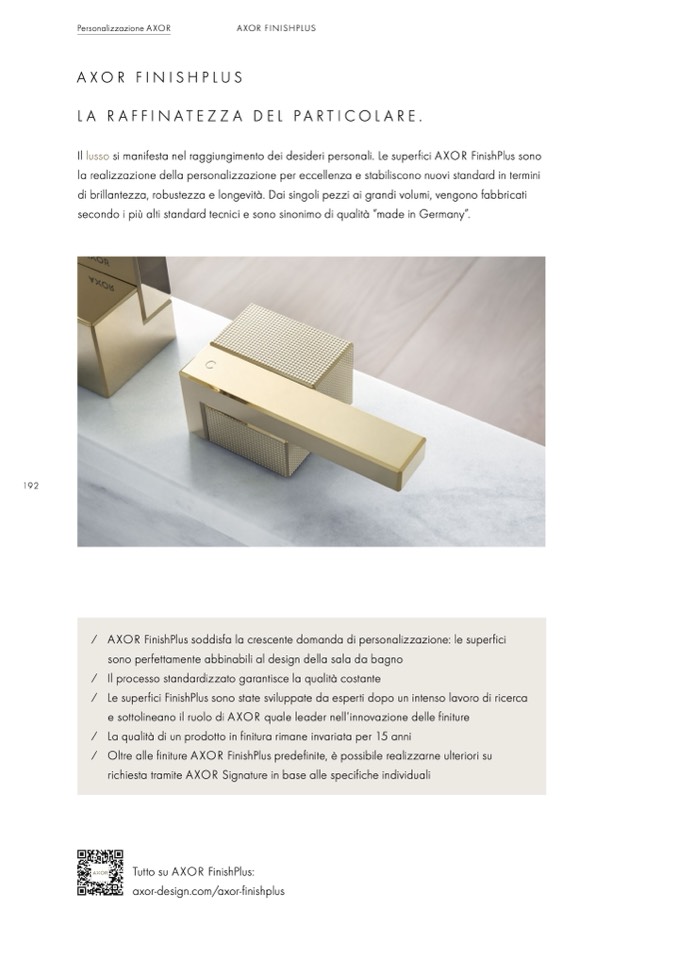 ⁄ Oltre alle finiture AXOR FinishPlus predefinite, è possibile realizzarne ulteriori su