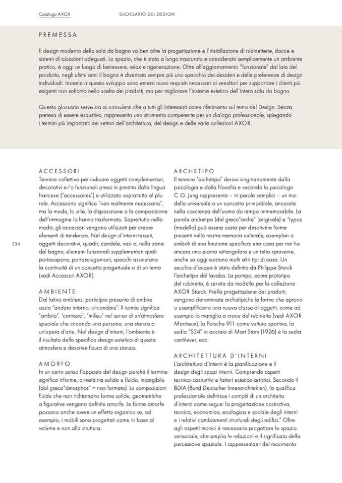 i termini più importanti dei settori dell’architettura, del design e delle varie collezioni AXOR.