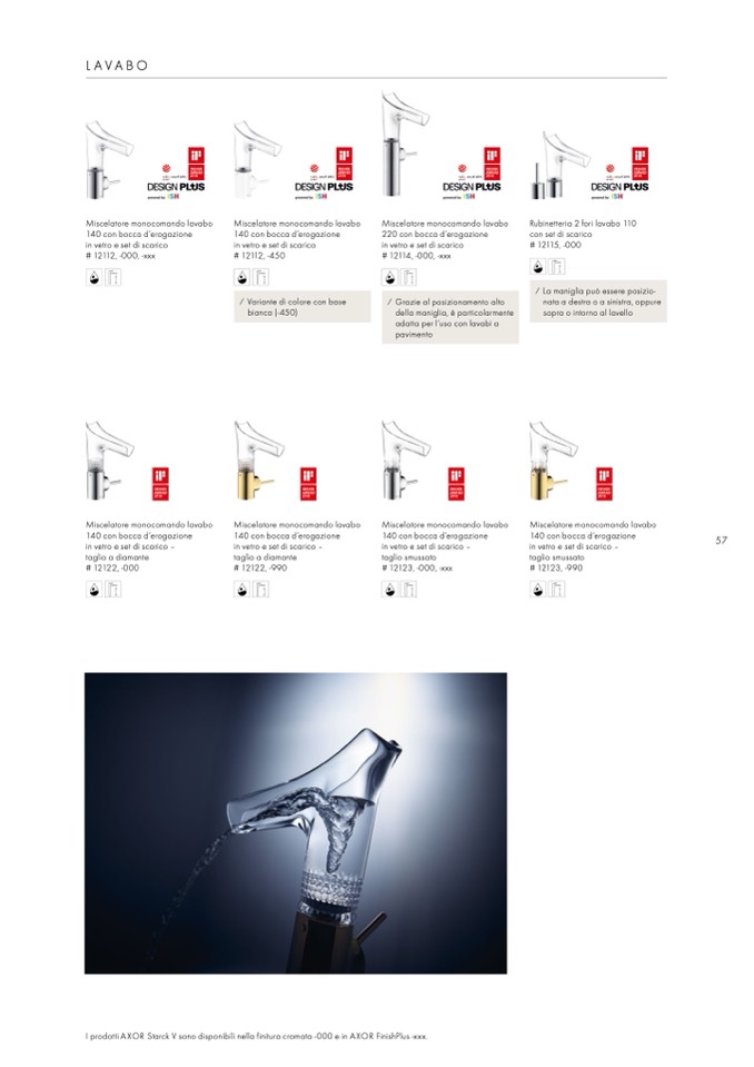 I prodotti AXOR Starck V sono disponibili nella finitura cromata -000 e in AXOR FinishPlus -xxx.