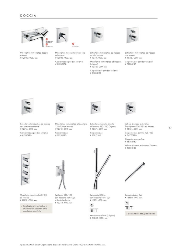 I prodotti AXOR Starck Organic sono disponibili nella finitura Cromo -000 e in AXOR FinishPlus -xxx.