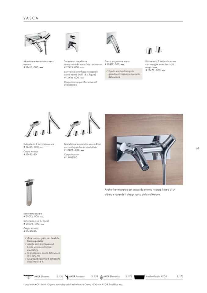 I prodotti AXOR Starck Organic sono disponibili nella finitura Cromo -000 e in AXOR FinishPlus -xxx.