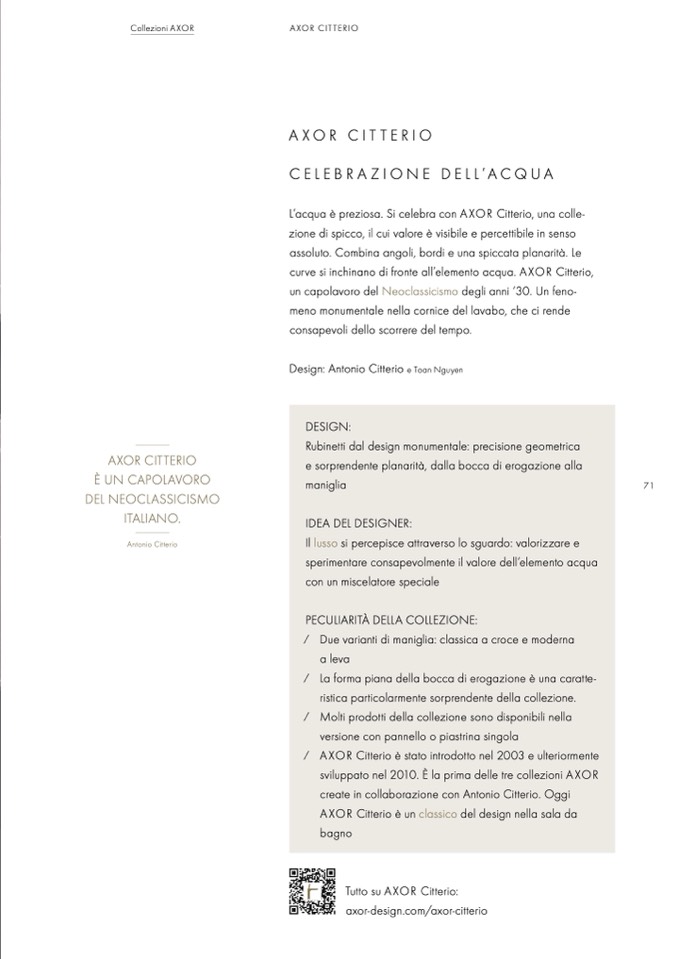 ⁄ AXOR Citterio è stato introdotto nel 2003 e ulteriormente
